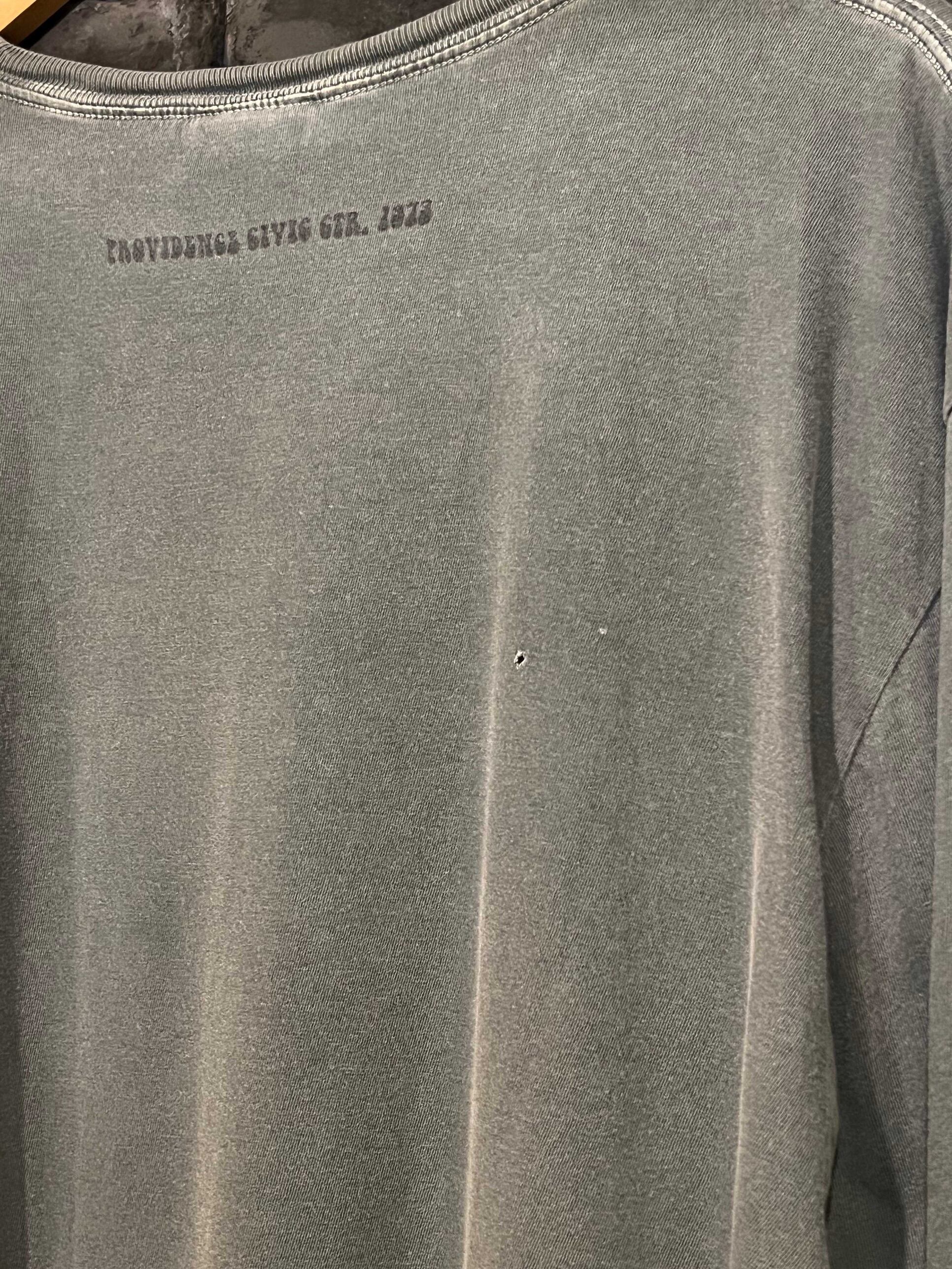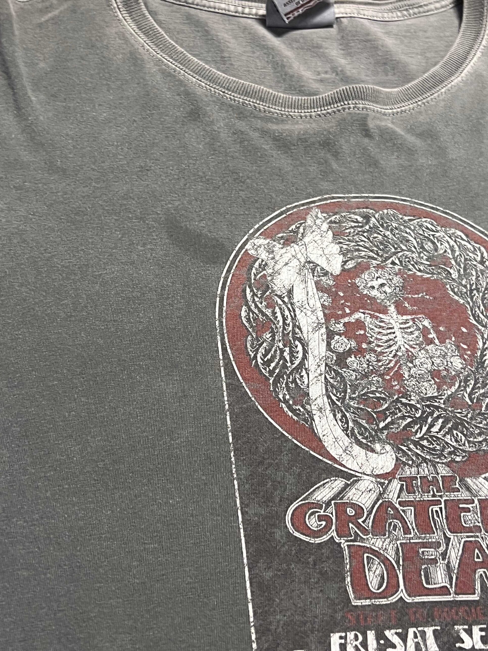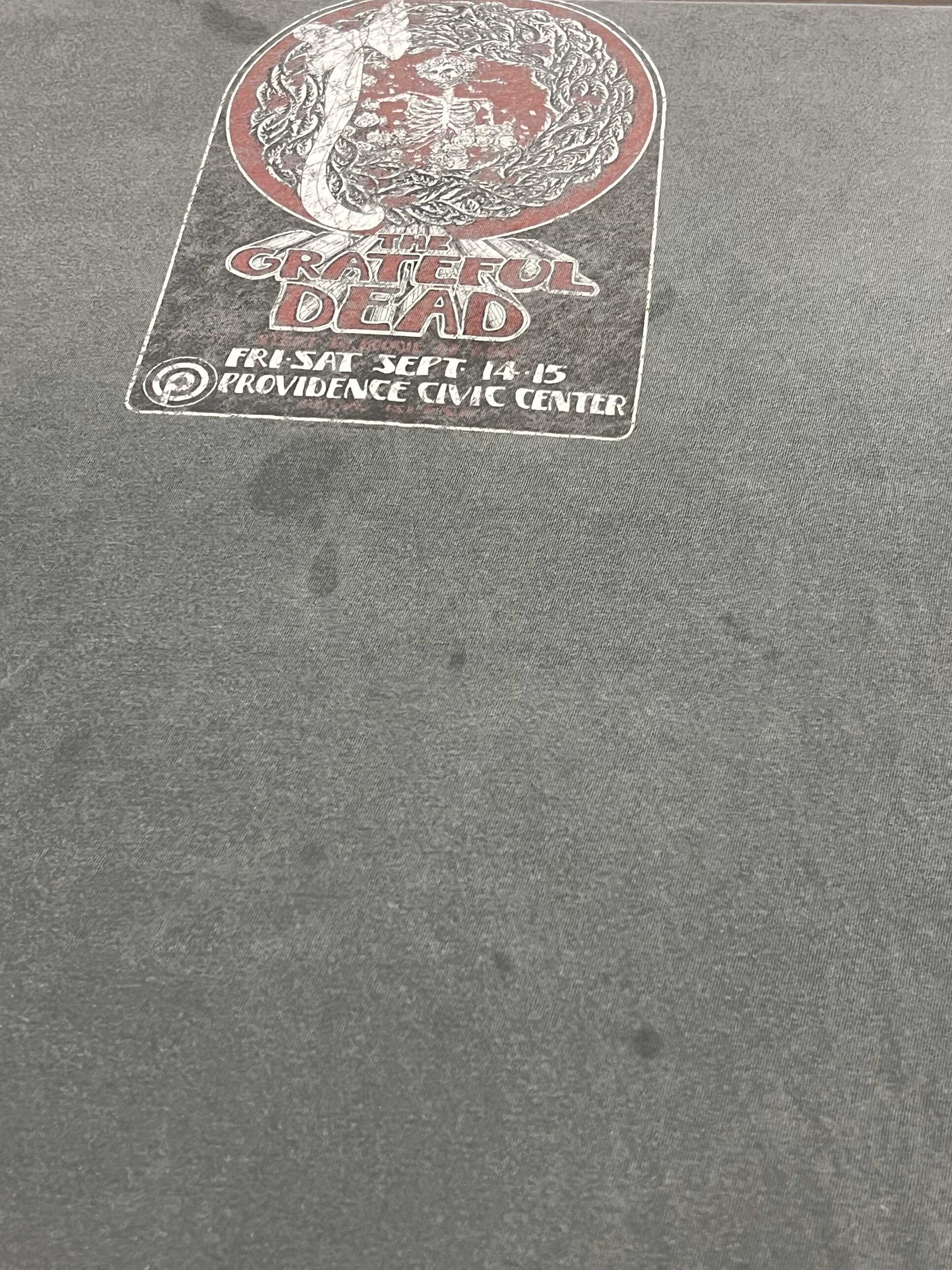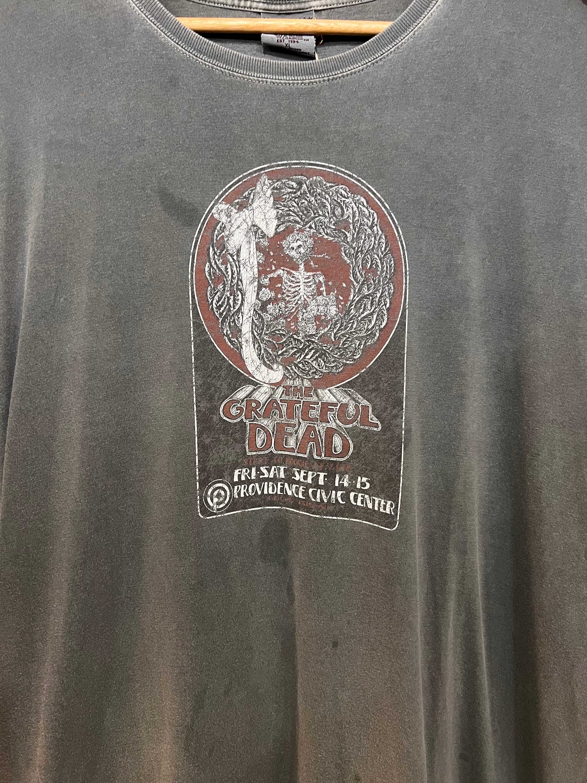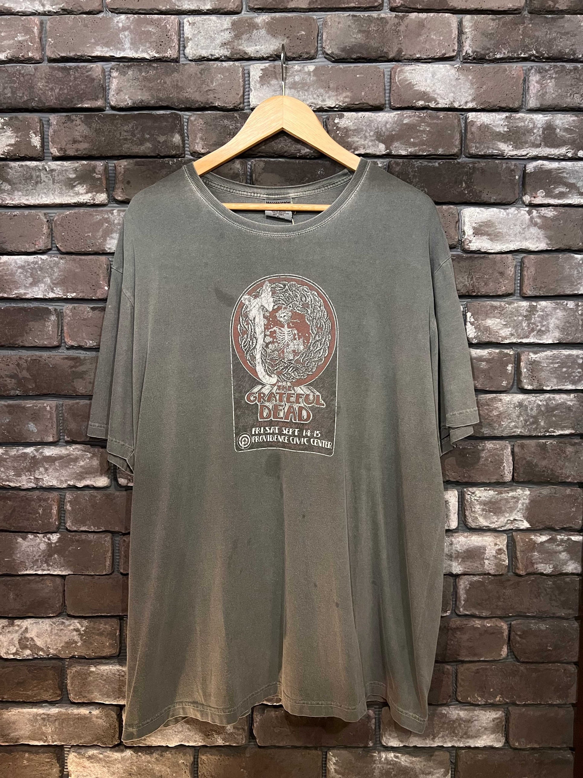 アメリカの伝説的バンド「GRATEFUL DEAD」のプロビデンス・シビックセンター公演(9月14日・15日)をモチーフにしたヴィンテージTシャツ。フロントには象徴的なスケルトンと花輪のグラフィックがプリントされ、味わい深いフェードグレーのボディが雰囲気抜群です。