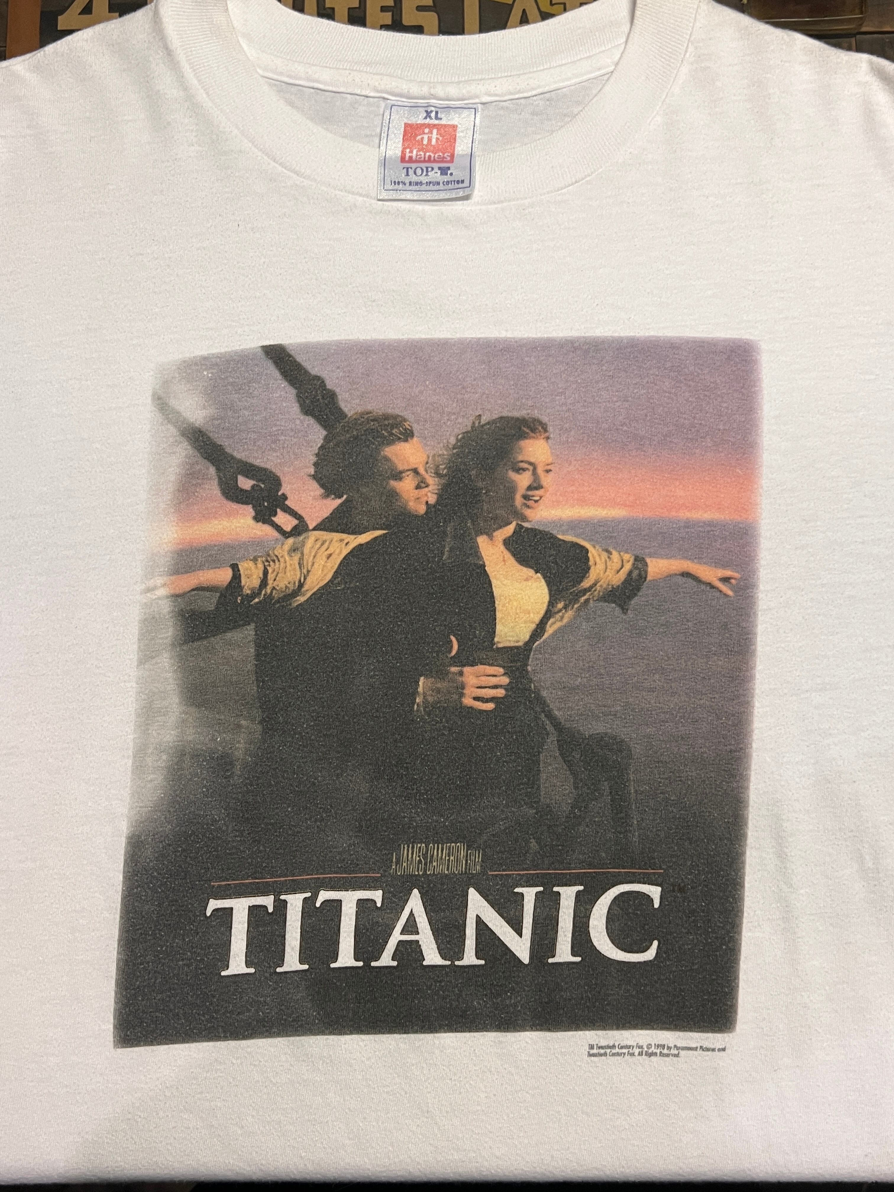 1997年公開のジェームズ・キャメロン監督による名作映画『TITANIC(タイタニック)』のフロントプリントTシャツ。1998年コピーライト入りのオリジナルヴィンテージ品です。