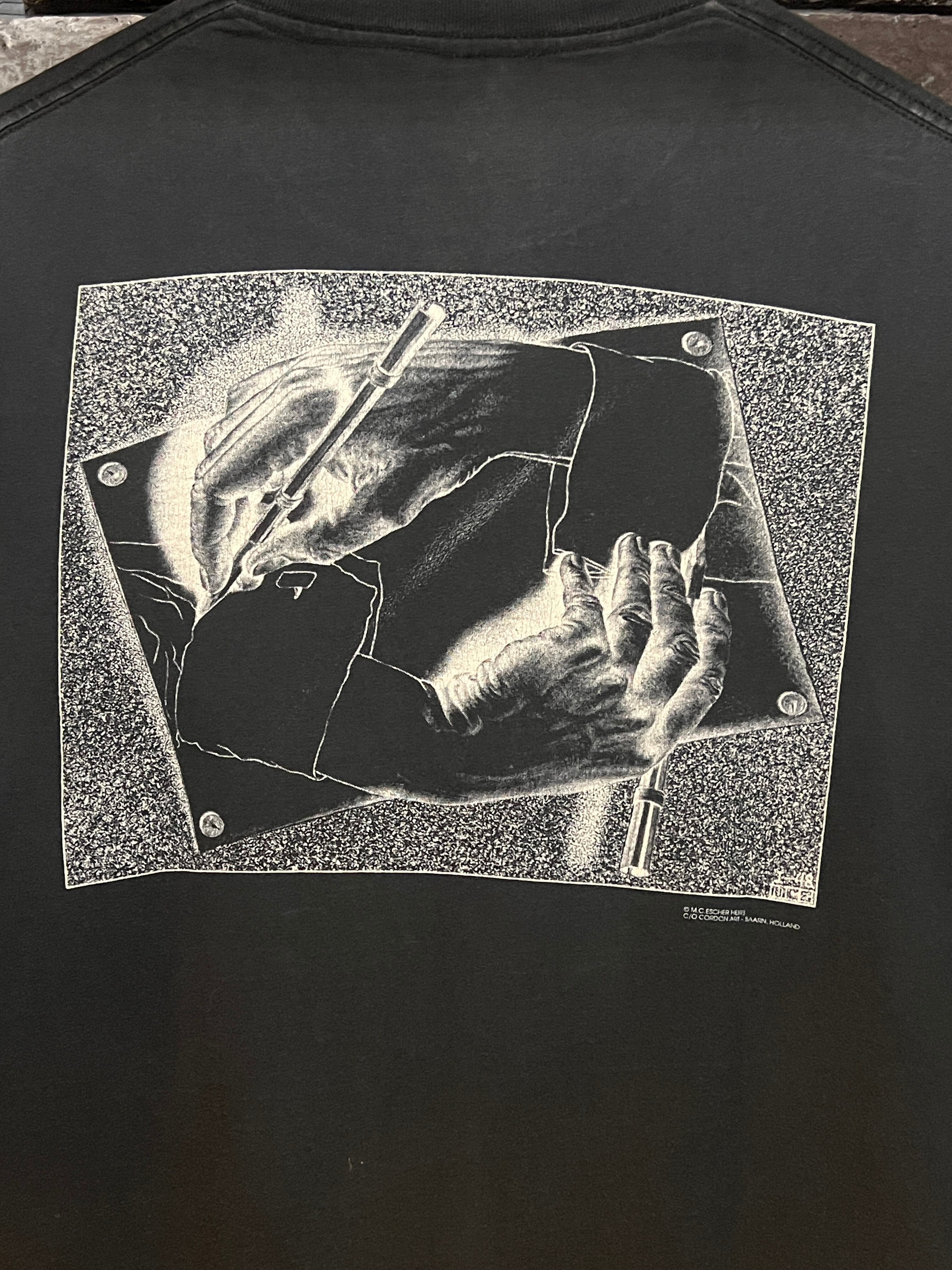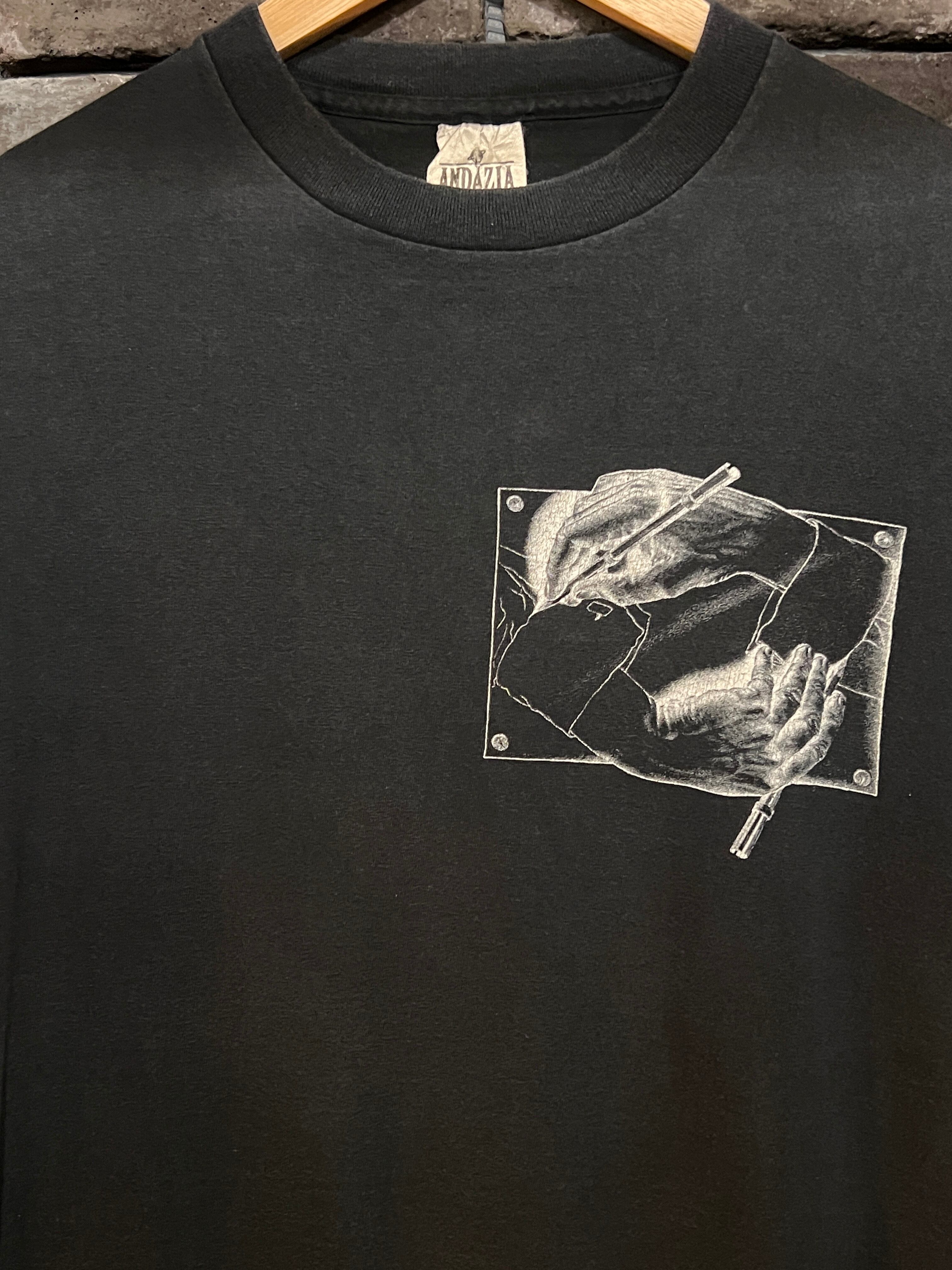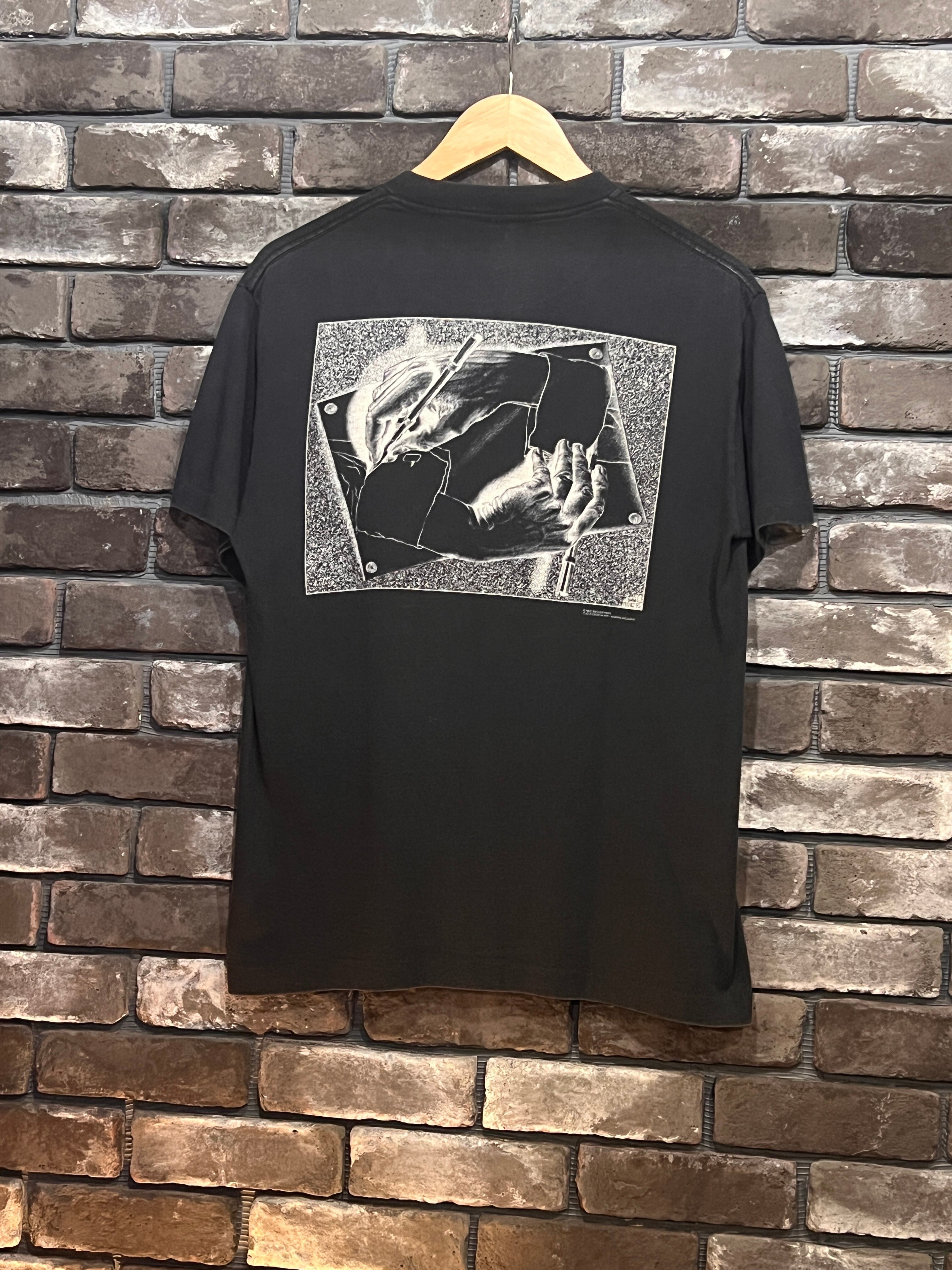90s ANDAZIA × M.C. ESCHER “DRAWING HANDS” 両面プリントTシャツ