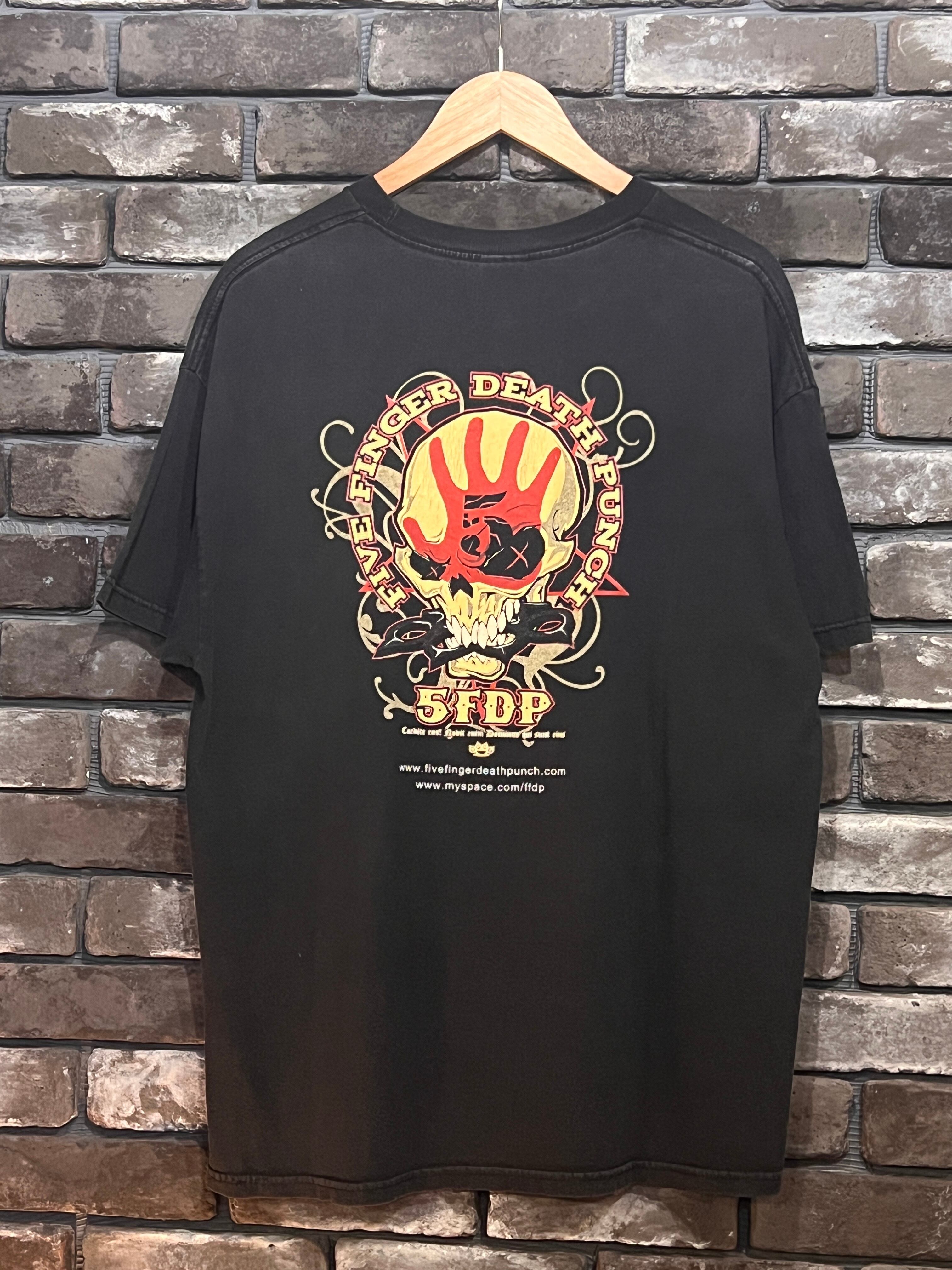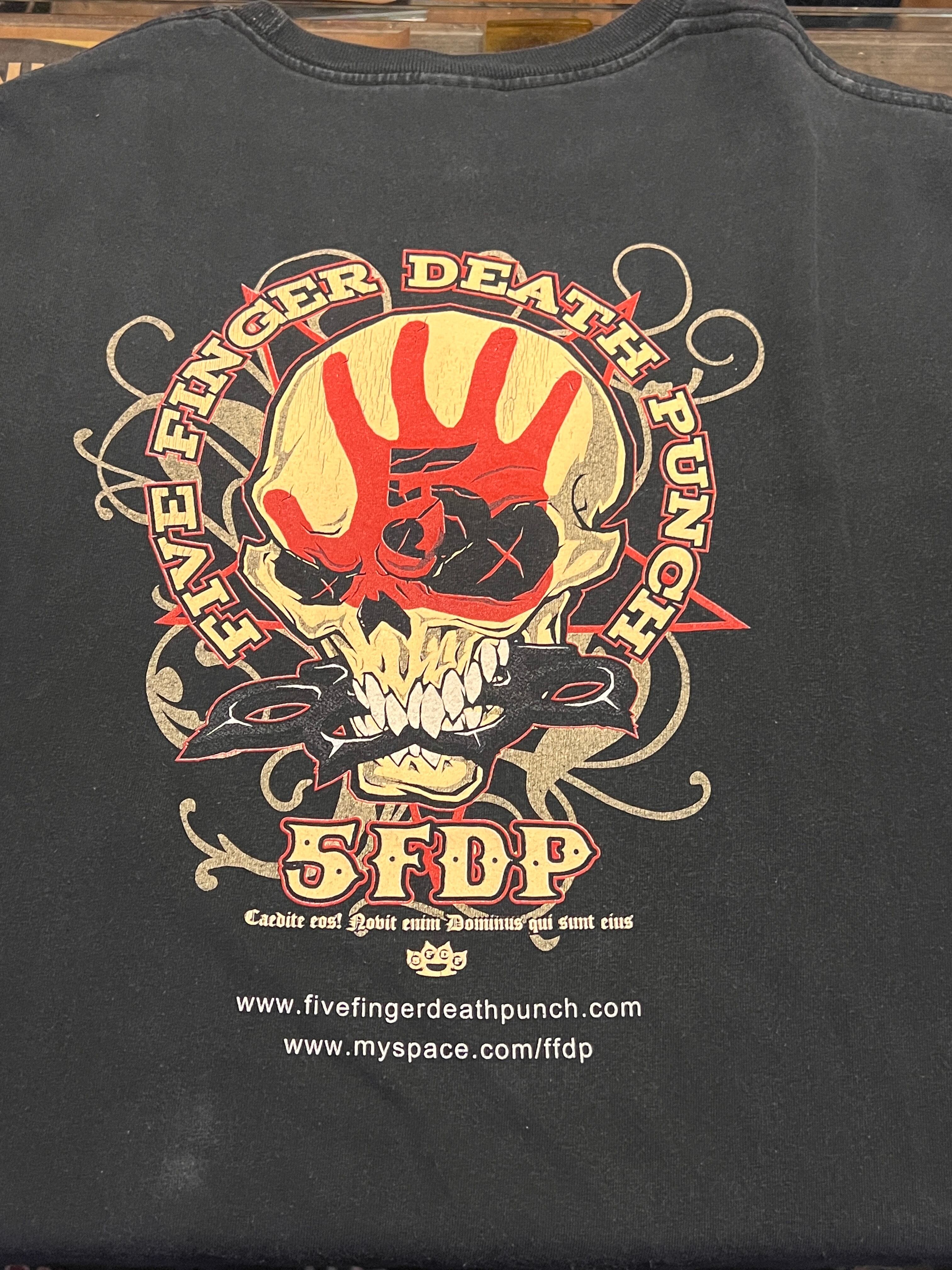 アメリカのヘヴィメタルバンド「FIVE FINGER DEATH PUNCH(ファイブ・フィンガー・デス・パンチ)」と、ドイツの薬草系リキュール「Jägermeister(イエーガーマイスター)」の激レアなコラボTシャツ。