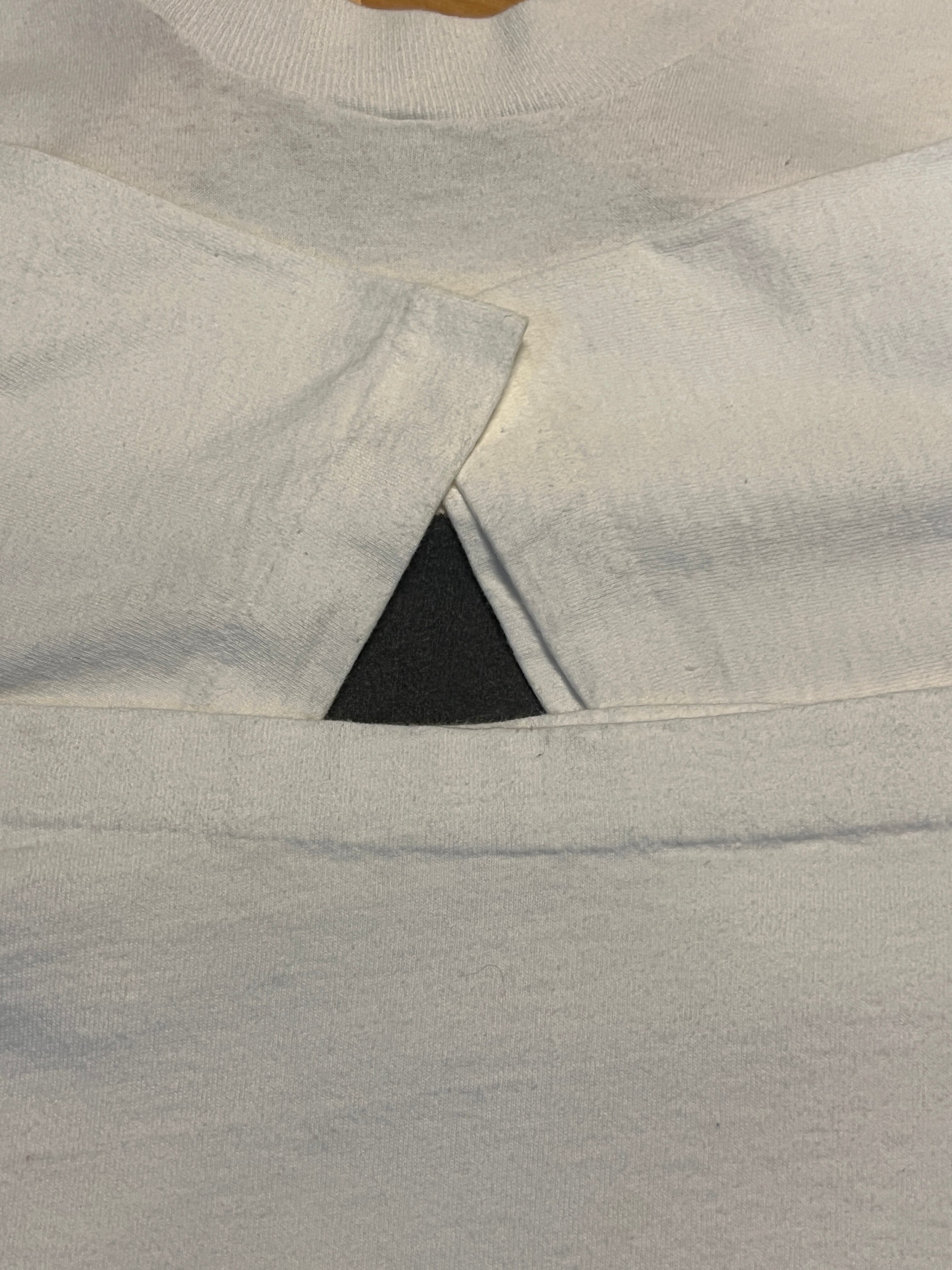90s〜00s初頭頃のFruit of the Loomタグ(USA製)を備えた、しっかりとしたシングルステッチボディ。ボディは生成り〜ライトアイボリー系カラーで、ブラックのフォトプリントが絶妙に映えるデザインです。