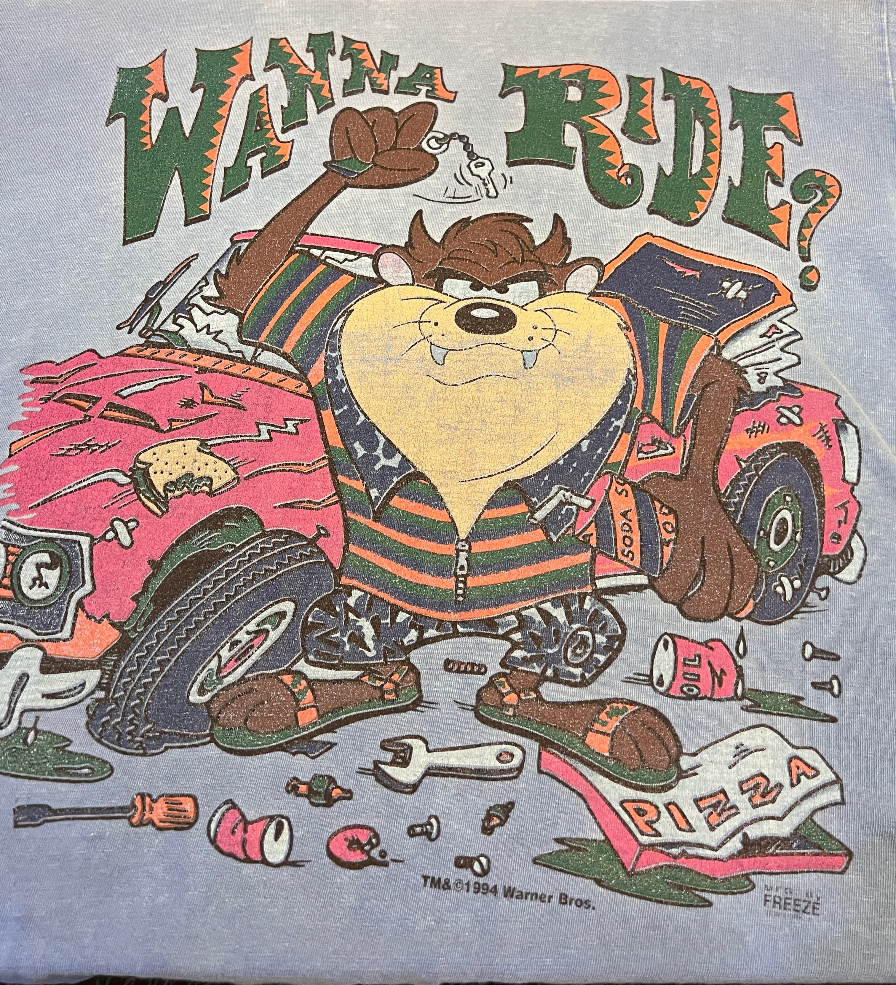 1994年製 Looney Tunes タズ “WANNA RIDE?” ヴィンテージTシャツ