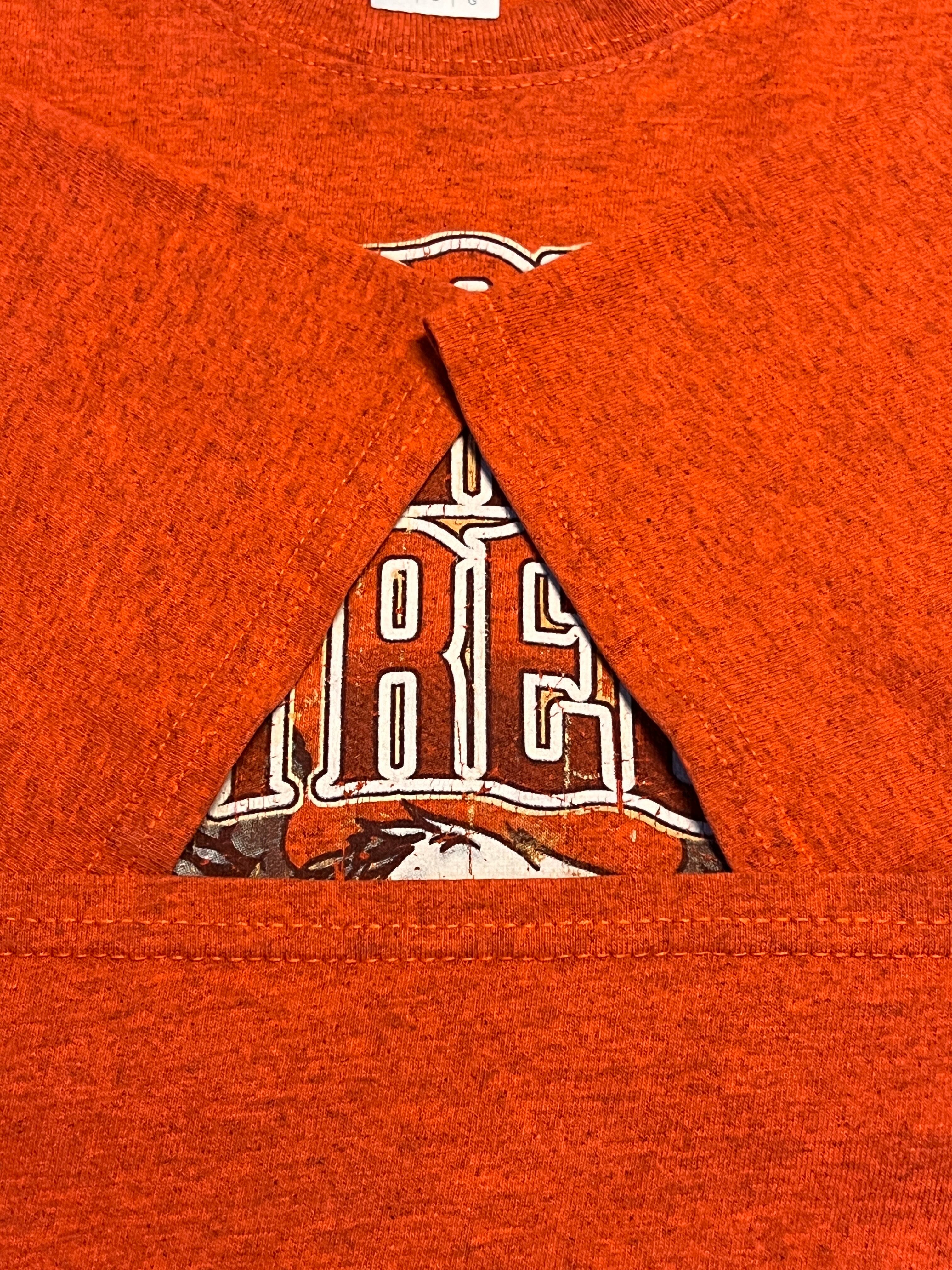 2019年コピーライト入りの正規品で、ボディはGILDAN製。杢感のあるヘザーレッド生地にヴィンテージライクなひび割れプリントが相まって、程よい雰囲気に仕上がっています。