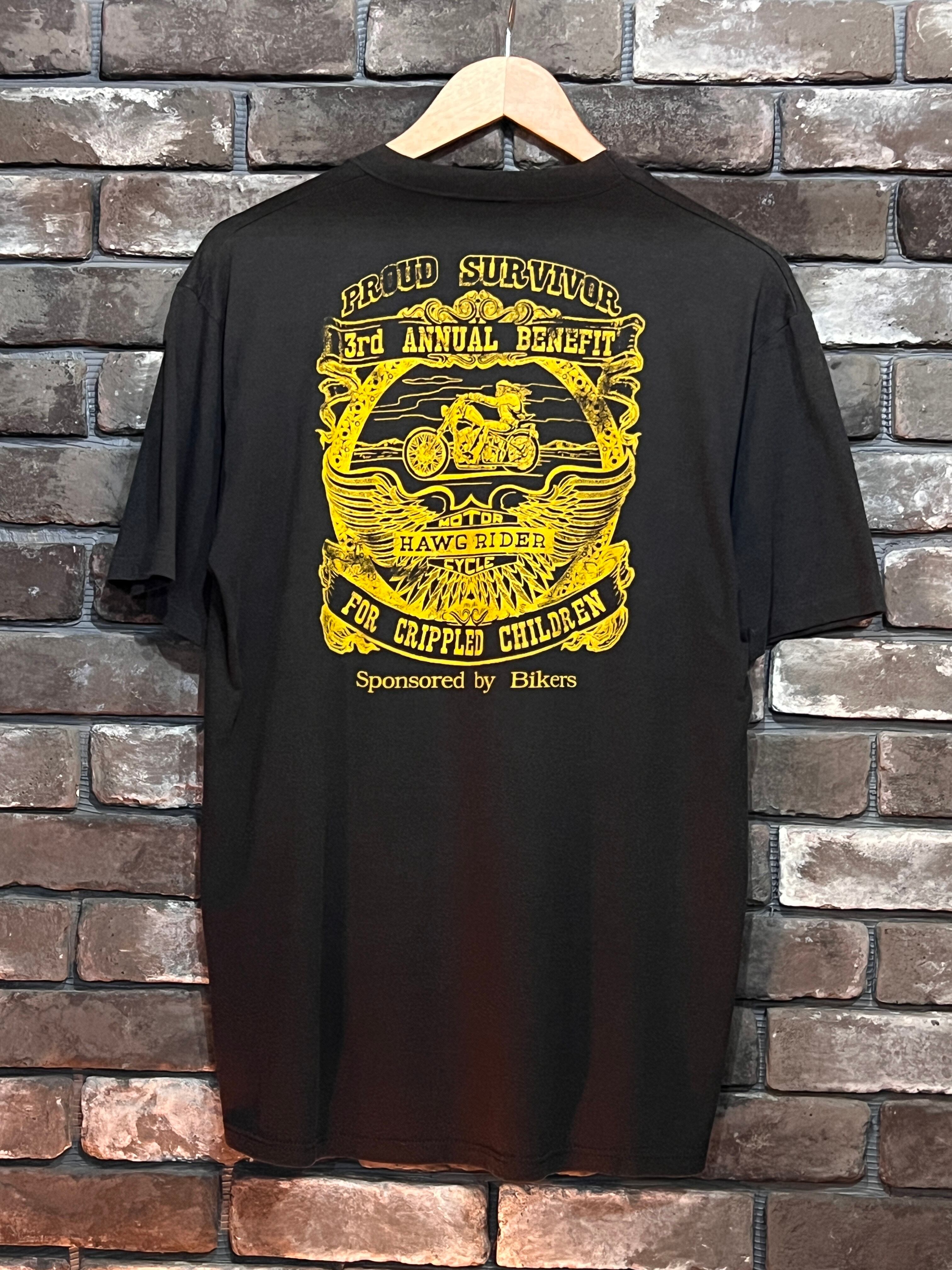 90s HAWG RIDER PROUD SURVIVOR Print T-shirt