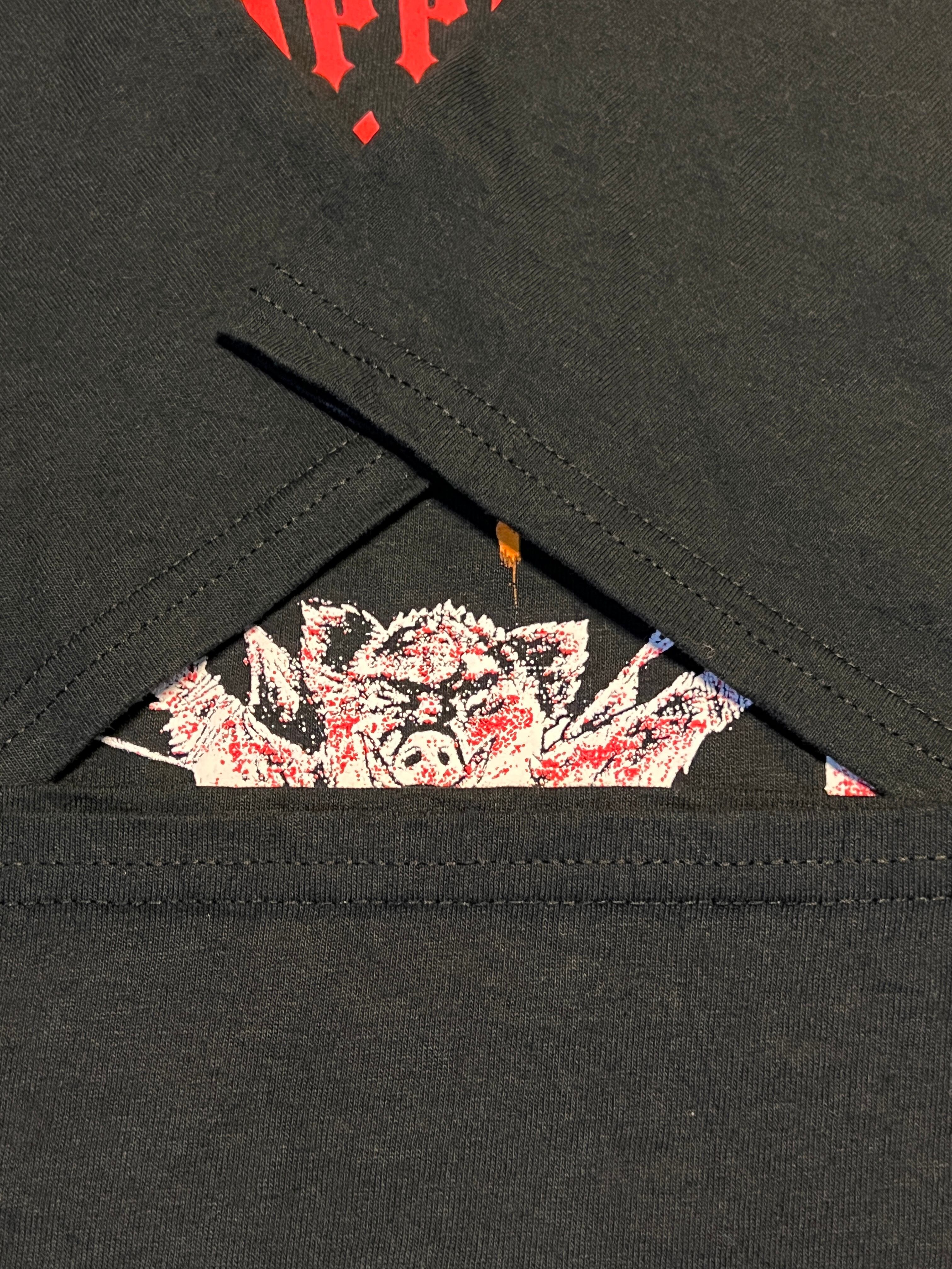 フロントには炎とブタのグラフィックに”SUPPORT LOS-VALIENTES 2018”のプリント、バックには力強い”GANG FONT”で“MINNESOTA WRECKING CREW”。
