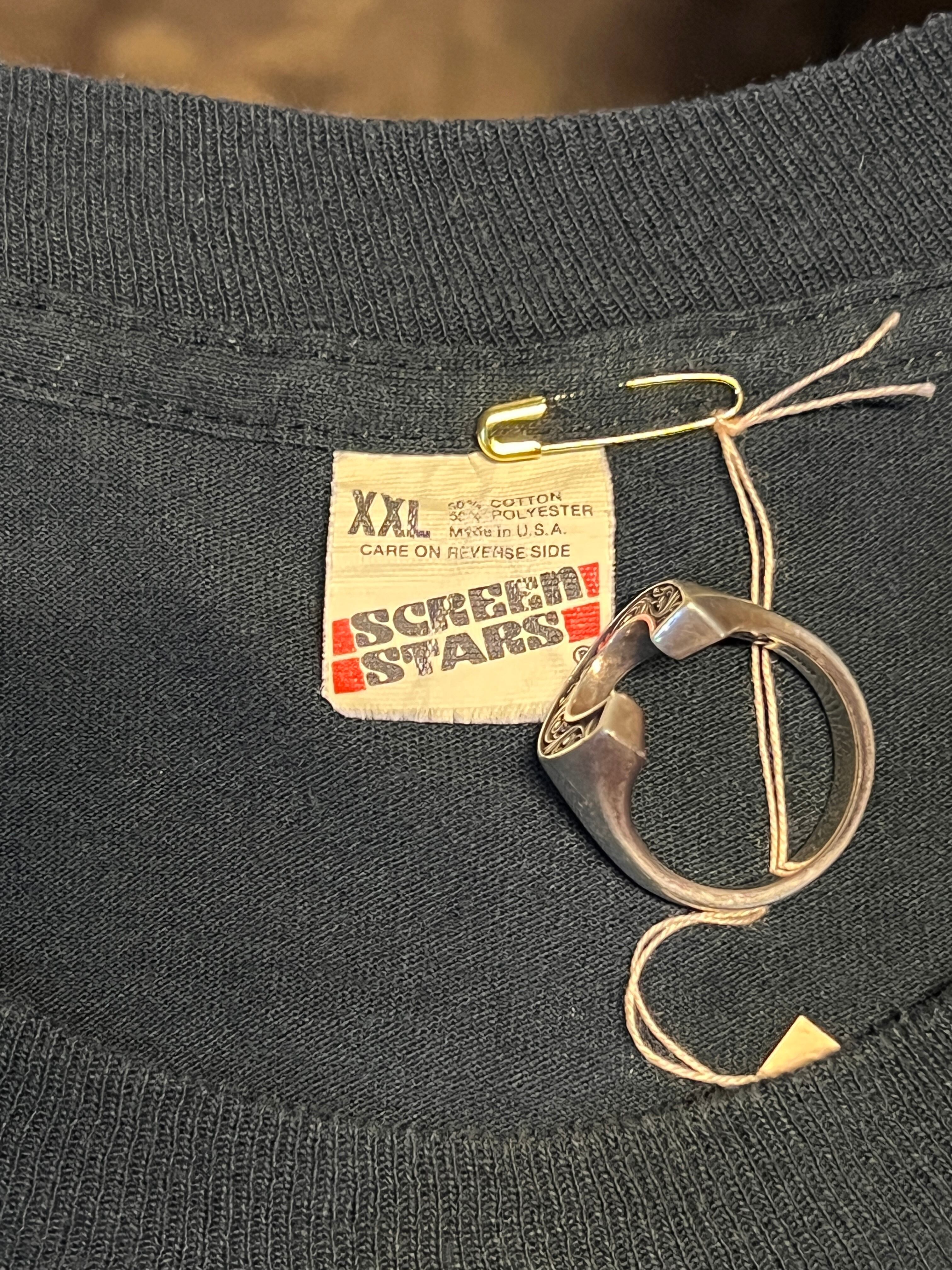 ボディはUSA製のSCREEN STARS、嬉しいXXLサイズで、当時らしいふっくらとしたポリコットンボディ。シングルステッチ仕様で、ヴィンテージならではの経年変化も楽しめる一着です。オールドバイカーやラリーファンはもちろん、アメカジ・ルードスタイルとの相性も抜群。