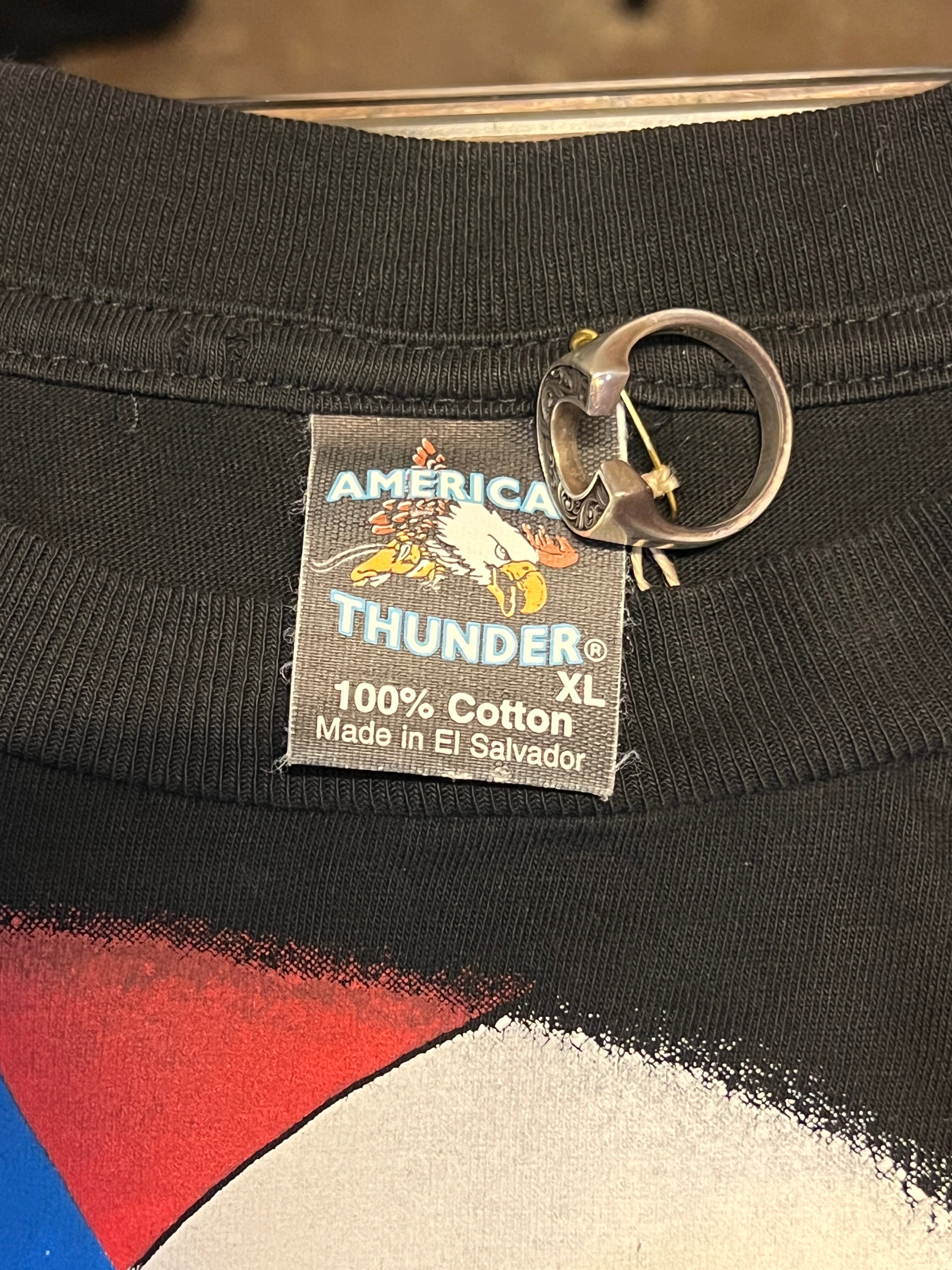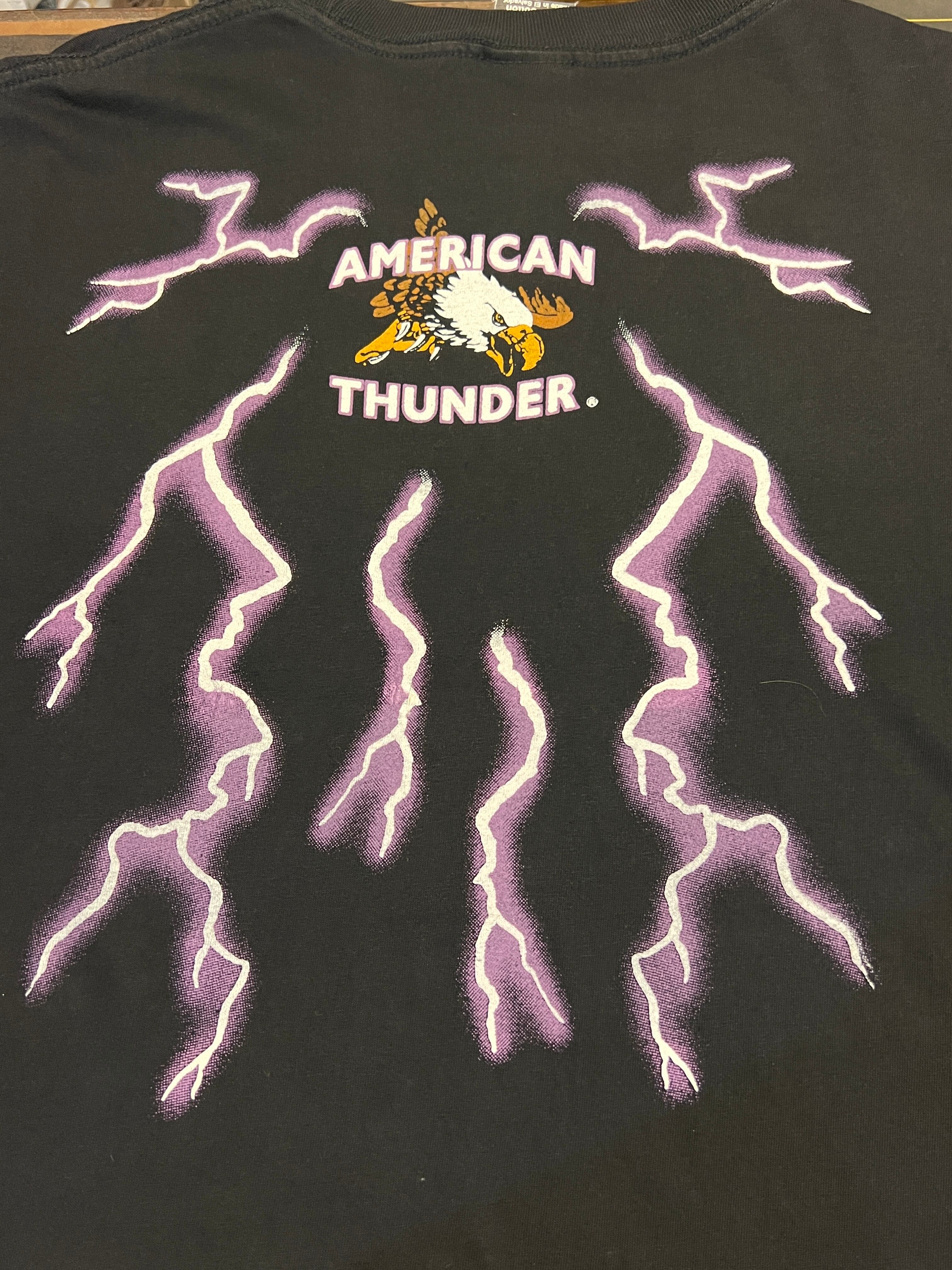 アメリカンイーグルと稲妻が全面に描かれた、インパクト抜群の《AMERICAN THUNDER》ヴィンテージTシャツ。