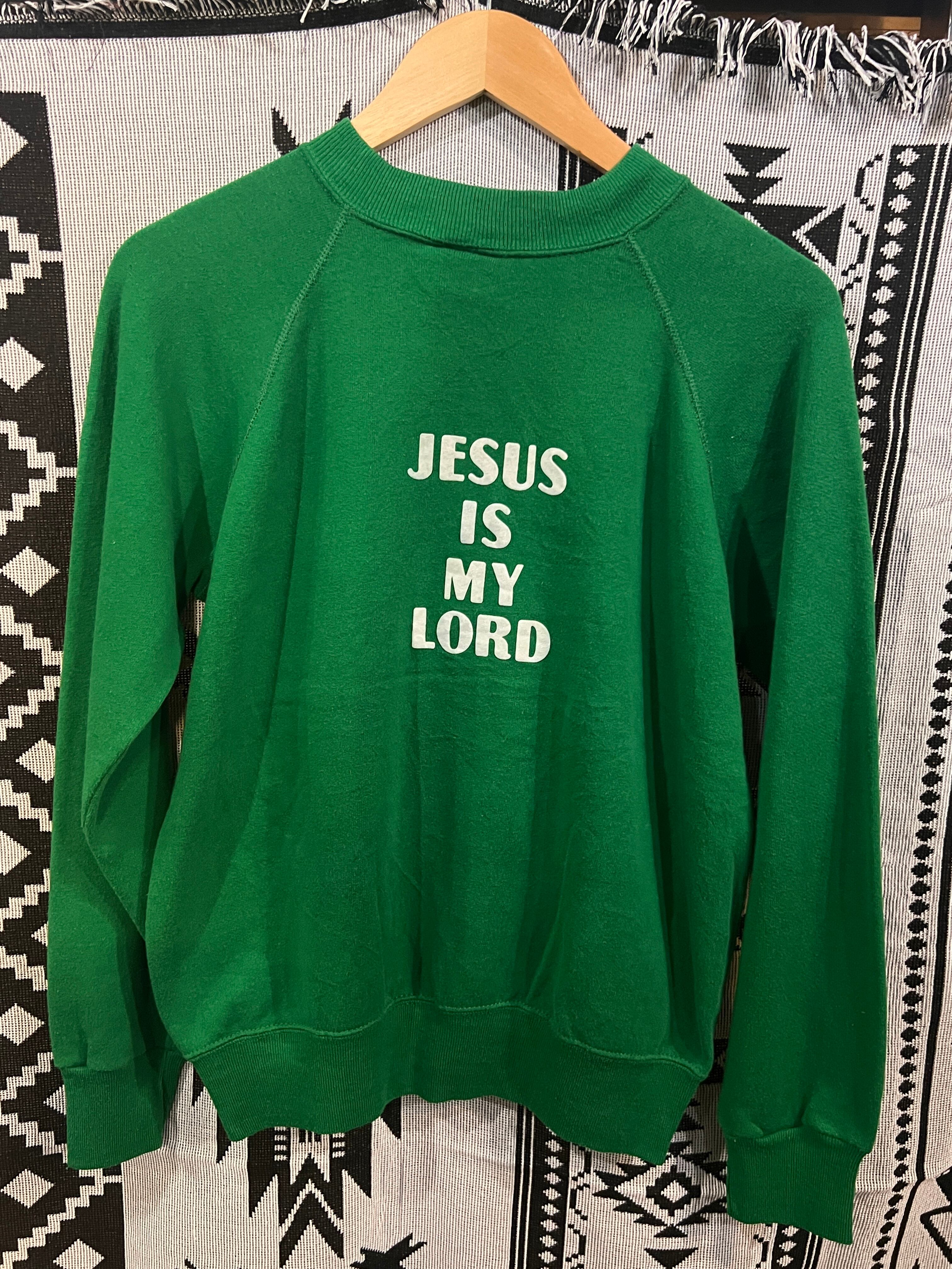 フロントには聖書と十字架、バックには「JESUS IS MY LORD」と大胆にプリントされたインパクト抜群の一枚。