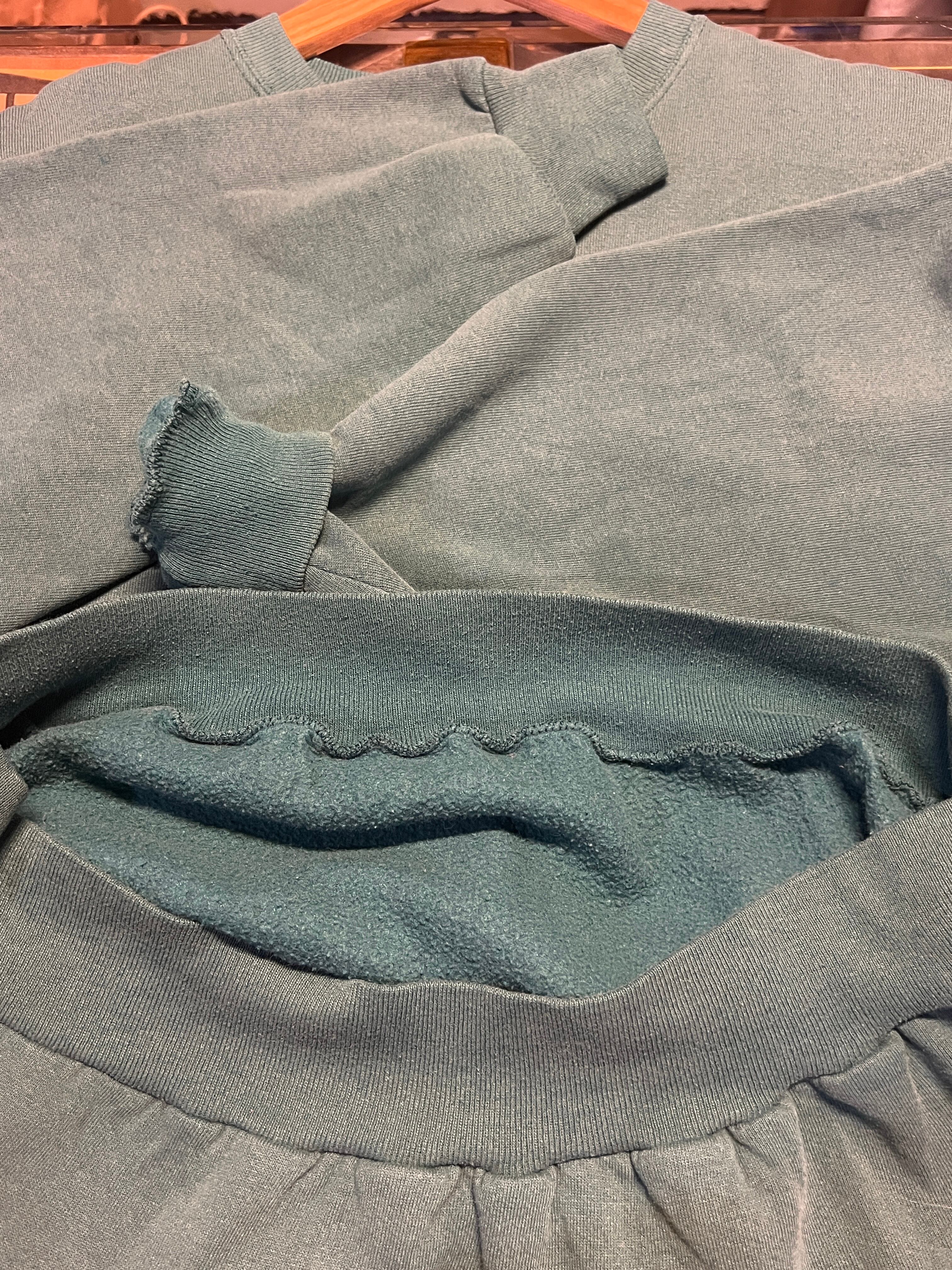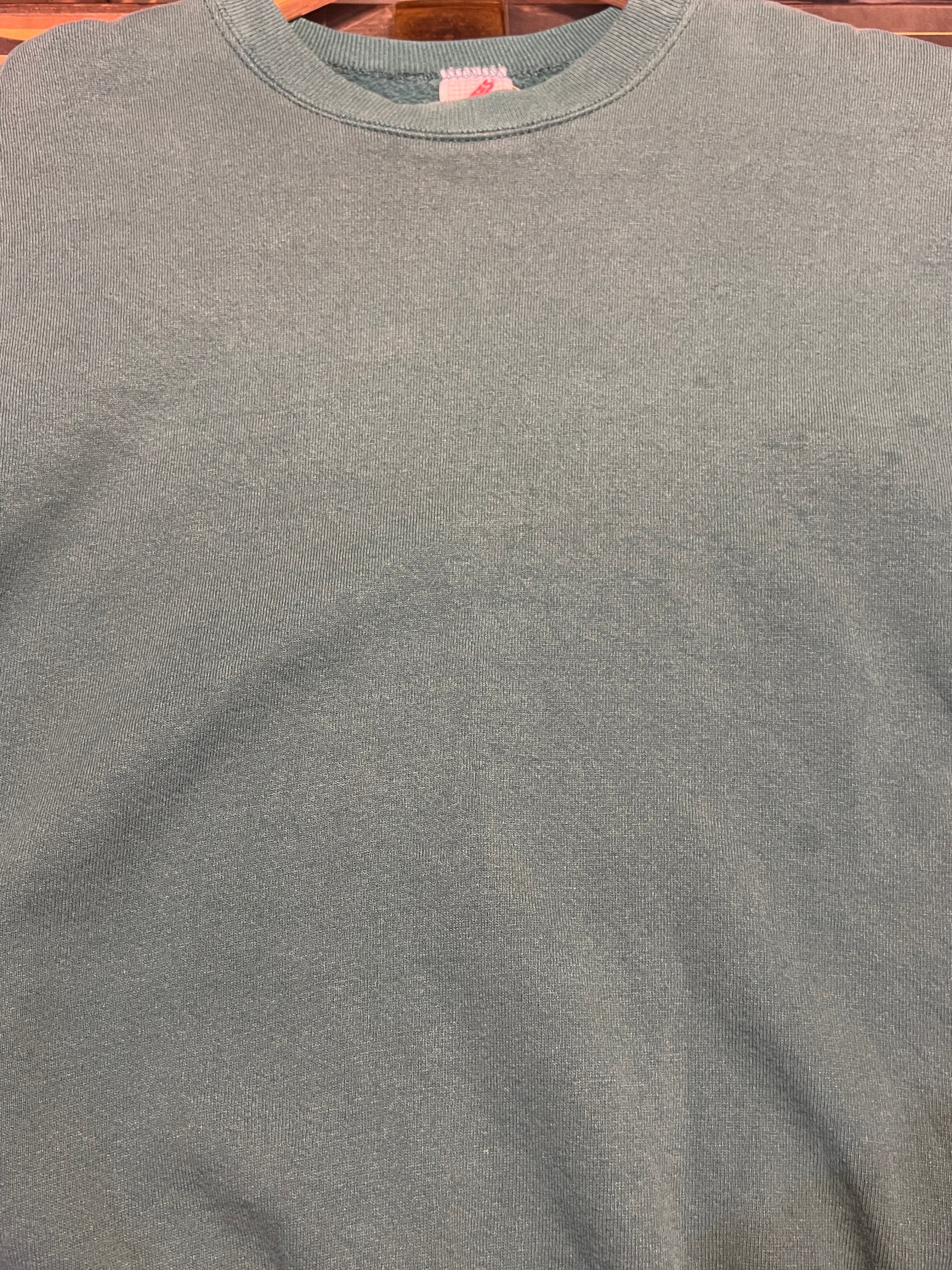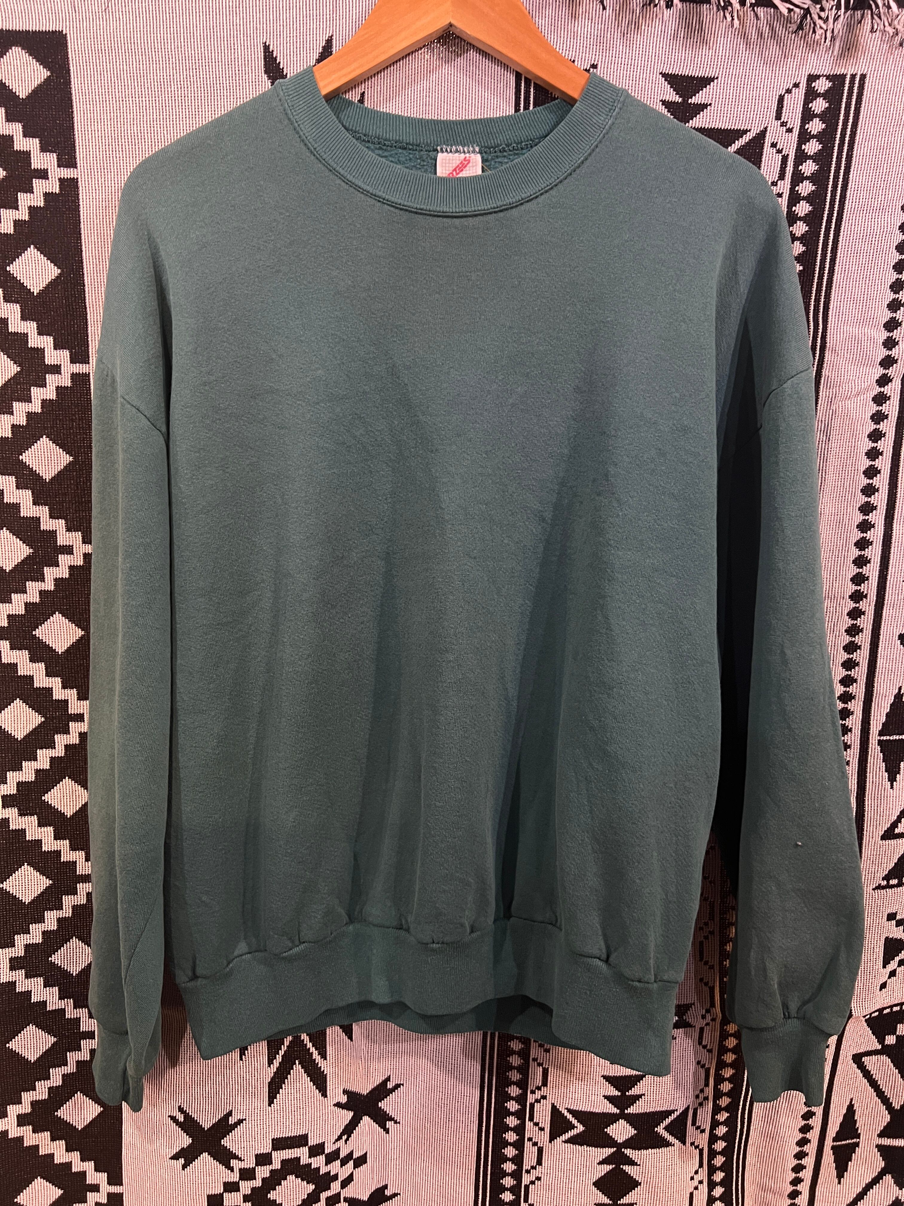 深みのあるグリーングレーのような色味が魅力的な、1980年代製 Jerzees(ジャージーズ)の無地スウェット。