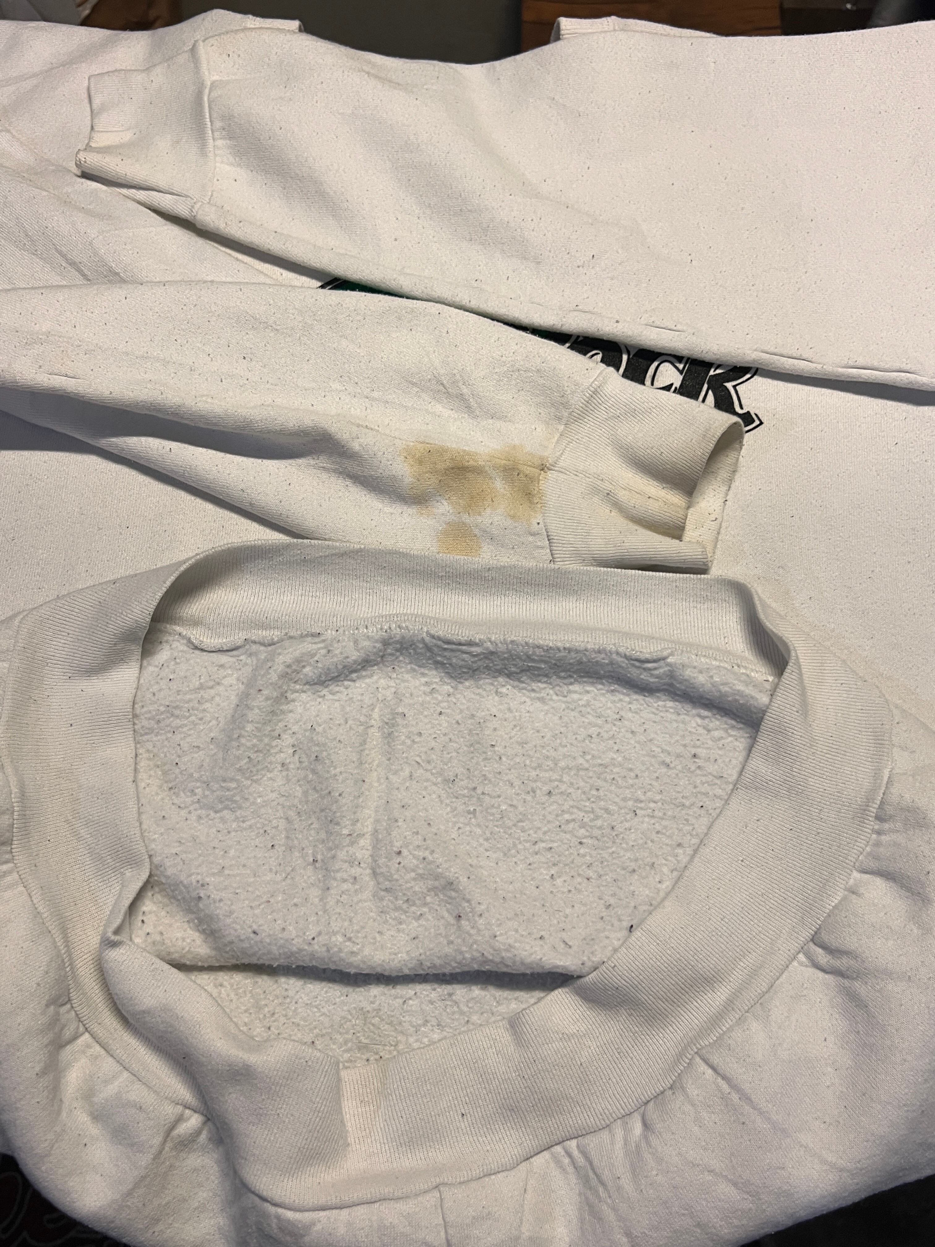 やや厚みのあるコットン×ポリエステルの裏起毛ボディで、古着ならではの柔らかな着心地が特徴です。