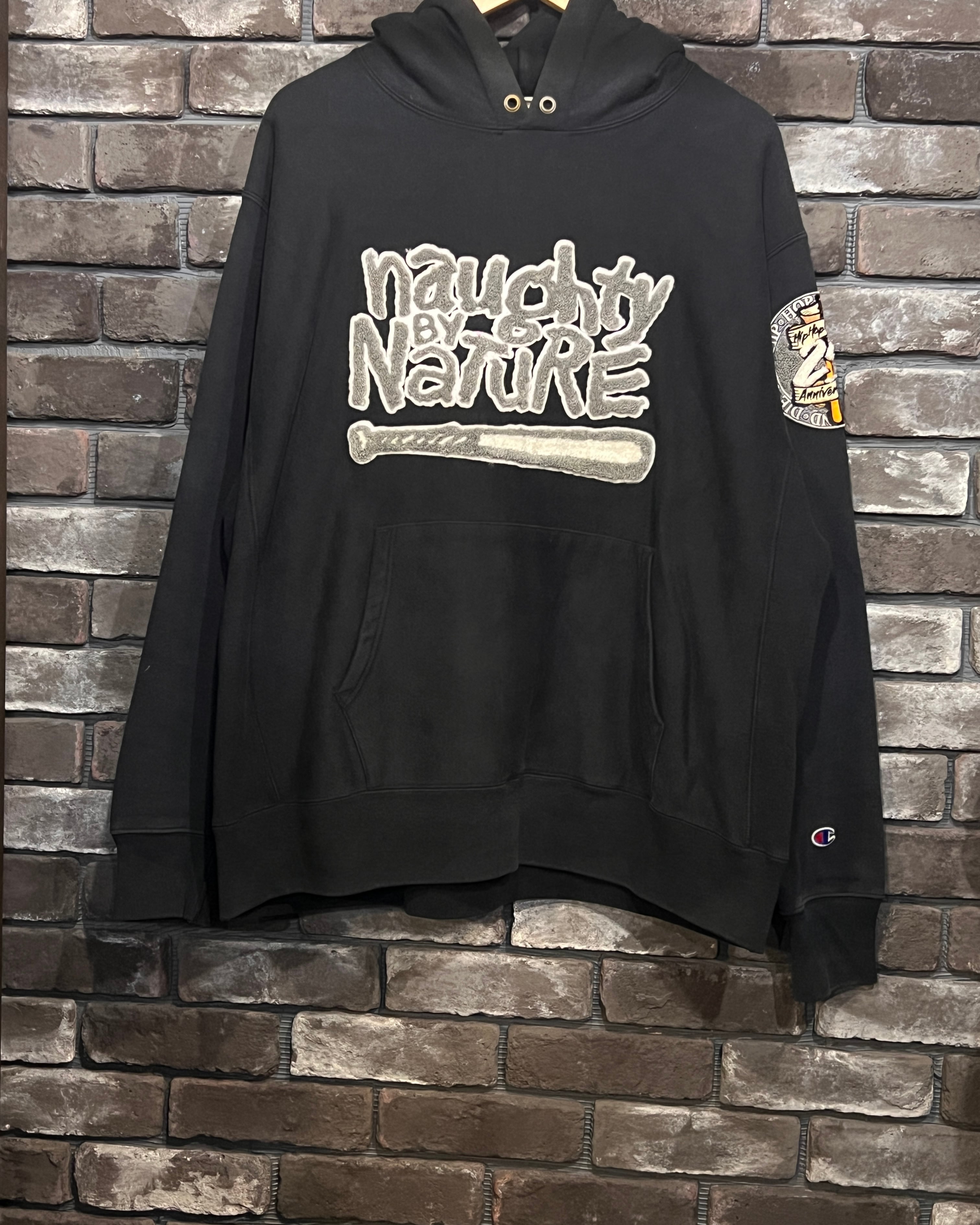 90年代HIP HOPを代表するグループ Naughty by Nature と、王道スウェットブランド Champion のスペシャルコラボアイテム。
