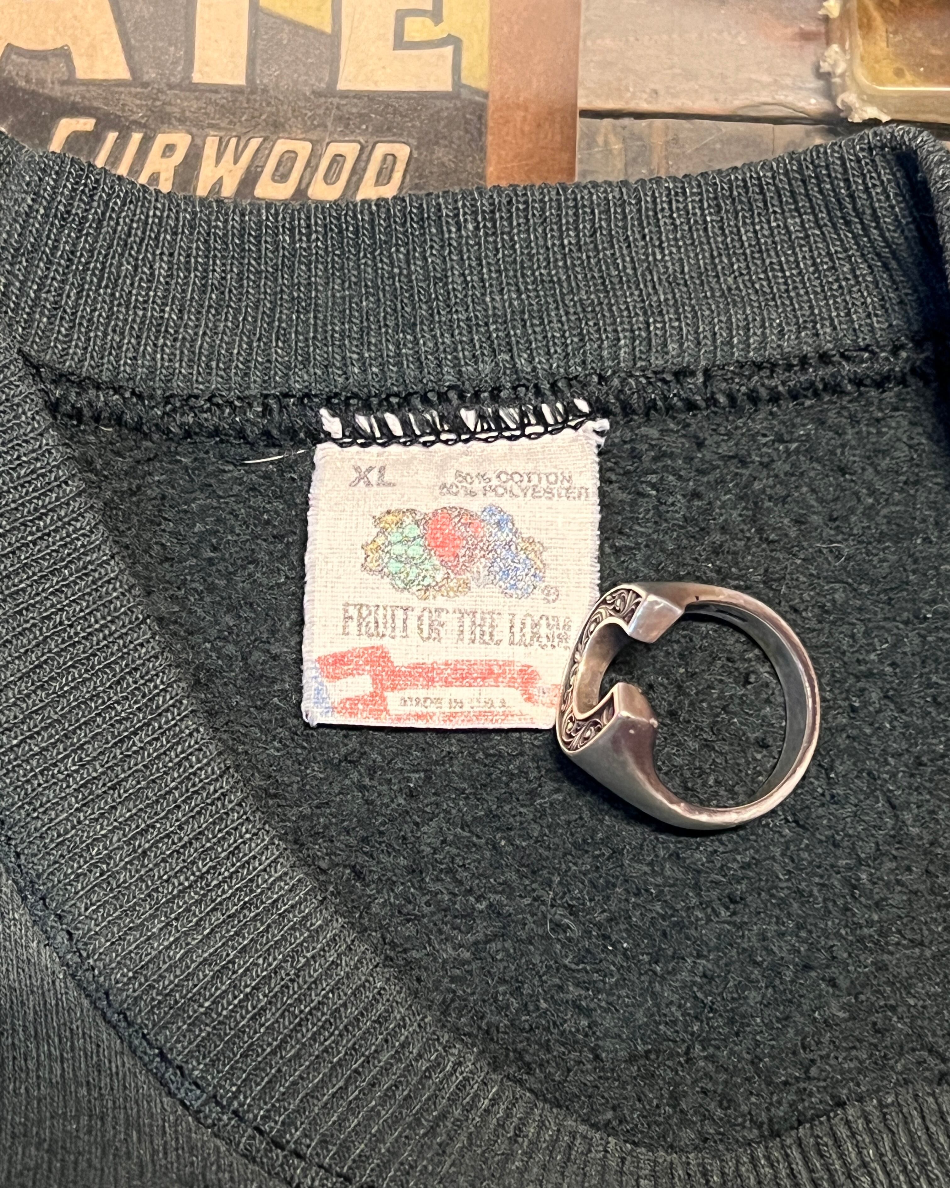 Fruit of the Loomタグ付き、USA製オリジナル。34年以上前の当時物がこのコンディションで残っているのは極めて稀。プリントのクラックやフェードがヴィンテージならではの深みを演出しています。