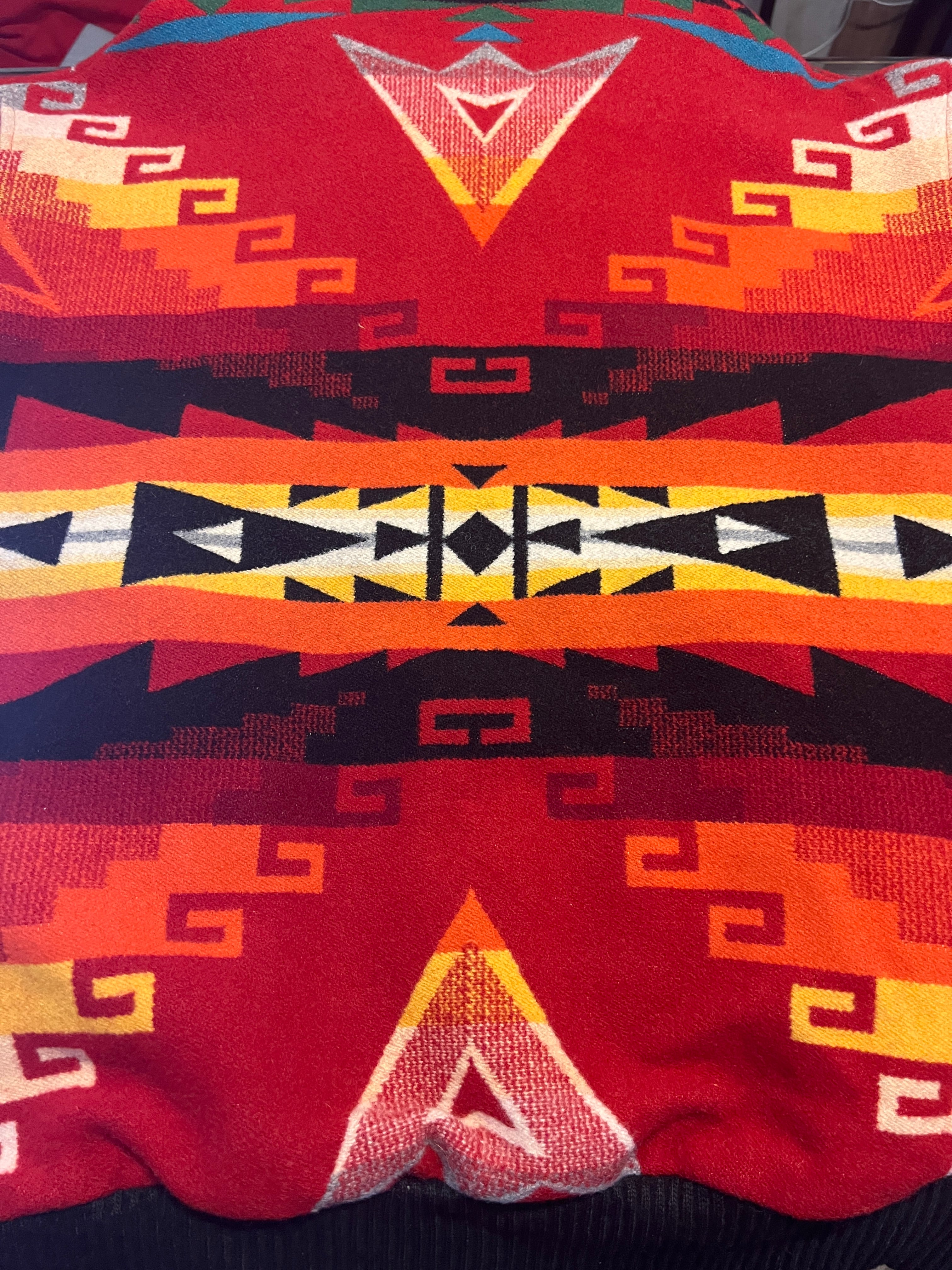 燃えるようなレッド×オレンジの幾何学ファイヤーパターンが圧巻の存在感。