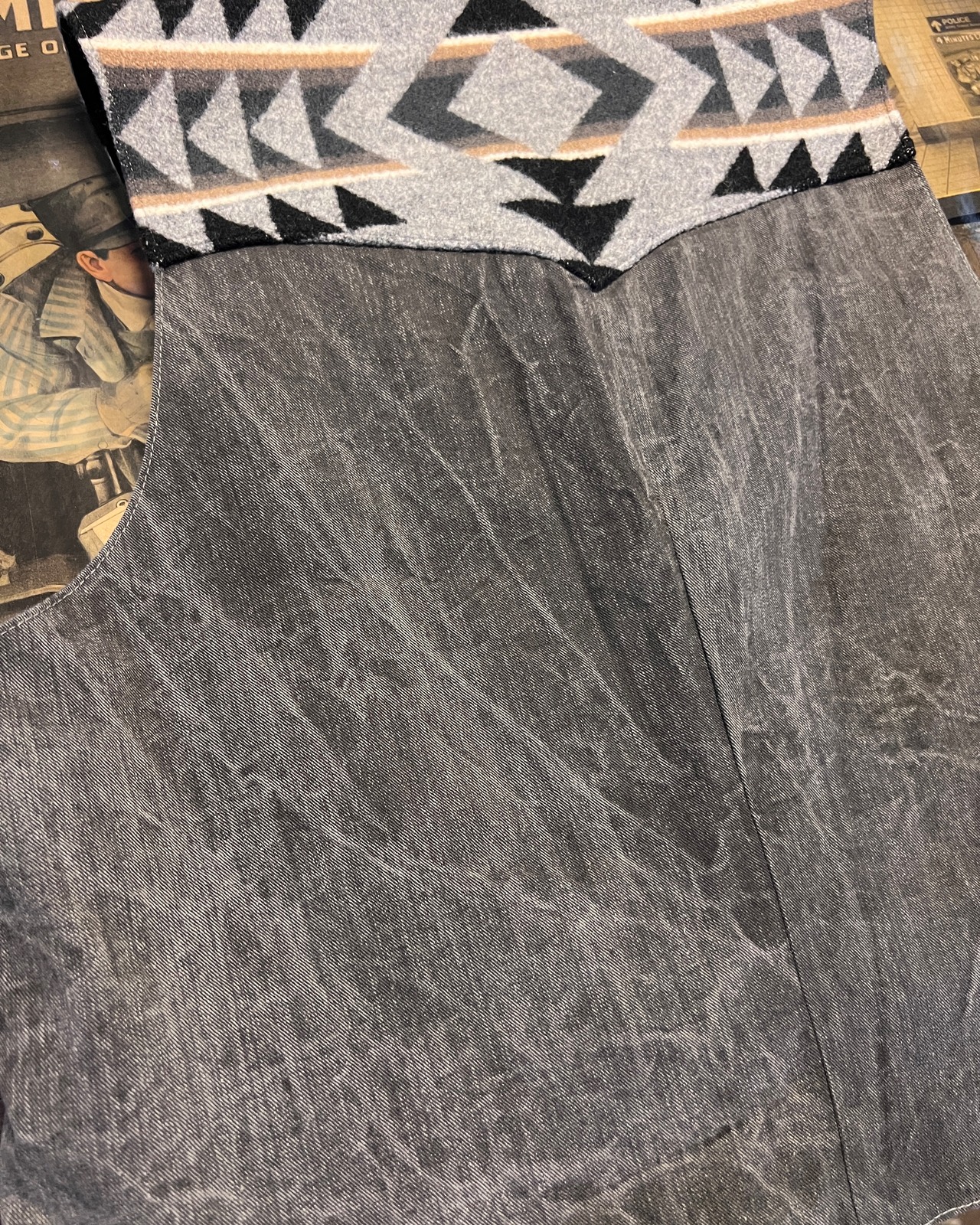 デニムボディにネイティブ柄ウールをヨーク部分に切り替えた、