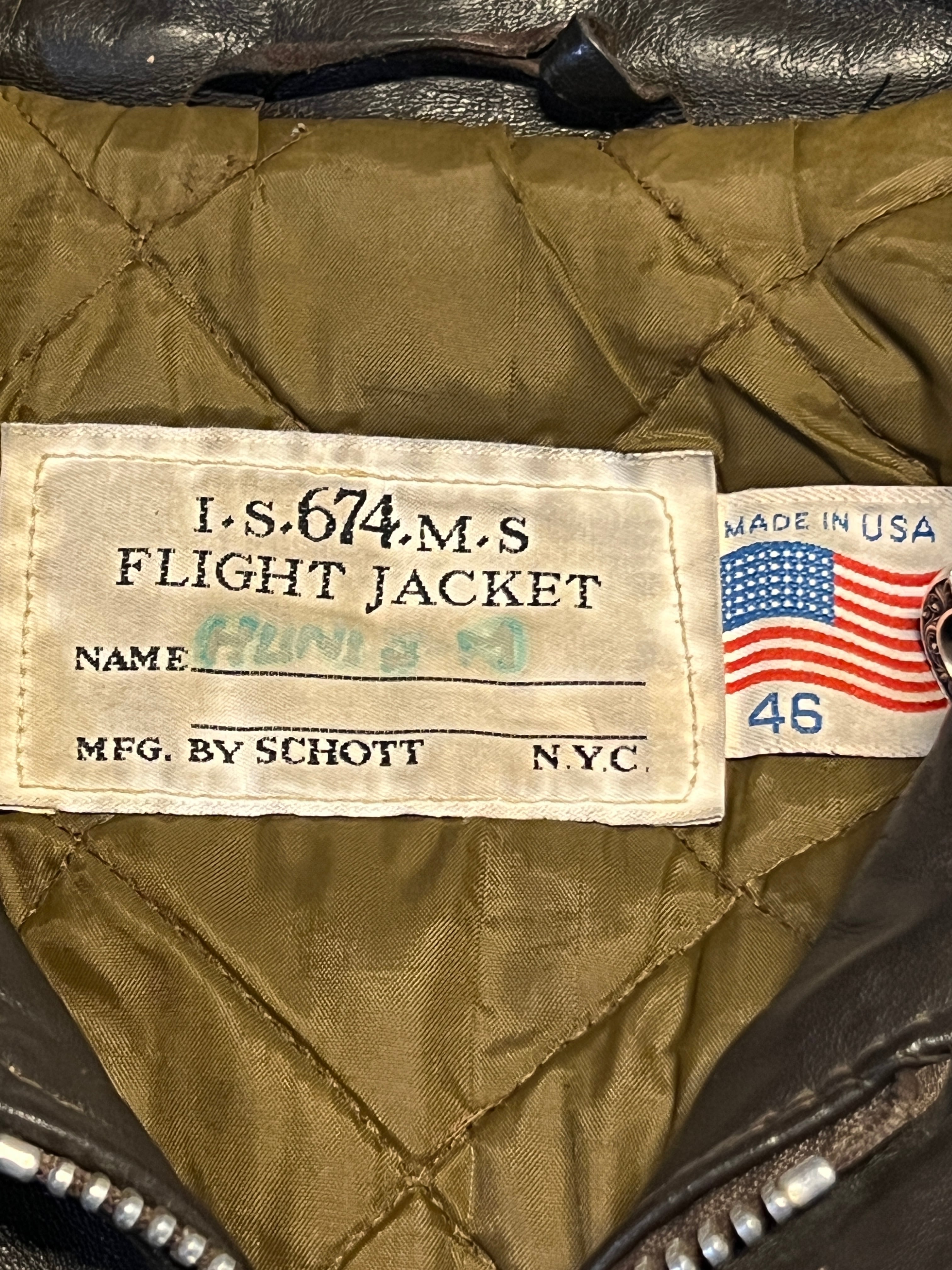 Schott 674 I.S.674.M.S USA製 フライトレザージャケット Size 46