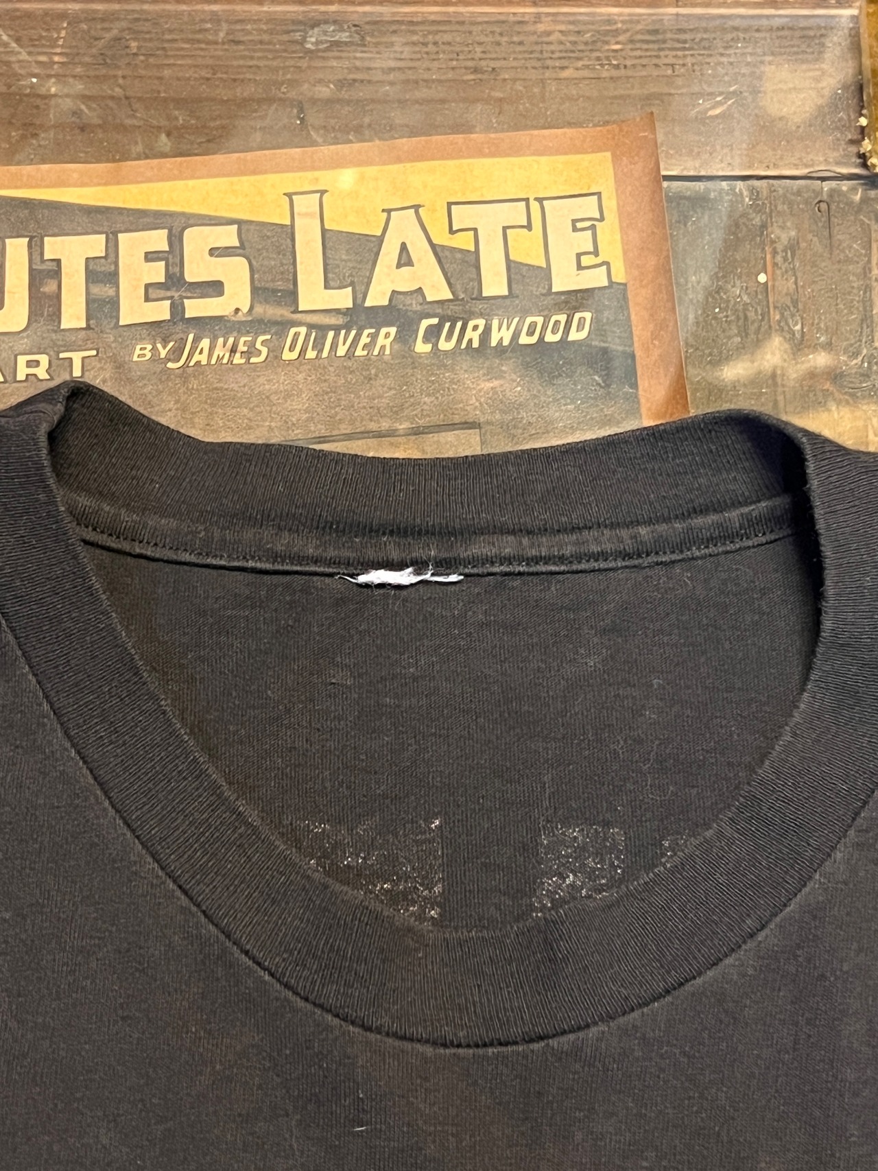 首元にダメージ、小穴など使用感は見られますが、ヴィンテージらしい雰囲気として着用いただけます。